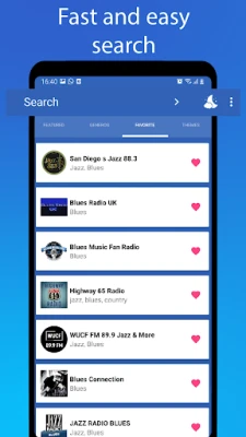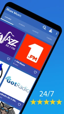 In this application you will find the best free radio stations, the most listened to rhythm and blues and rock bands and the new songs performed by artists and bands such as: BB King, Willie Dixon, Robert Leroy Johnson, Albert King, Chester Arthur Burnett, Buddy Guy, Blues Brothers, Steve Ray Vaughan, The Headhunters, Muddy Waters Band, The Moody Blues Greatest Hits, Roomful of Blues, The Bluesbreakers, The Fabulous Thunderbirds, Jon Spencer Blues Explosion, Mississippi Heat.