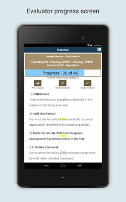 eVal gives users the ability to electronically capture and monitor exercise evaluations in an intuitive interface. The app is divided into two main areas based on permissions: a Facilitator section and an Evaluator section.