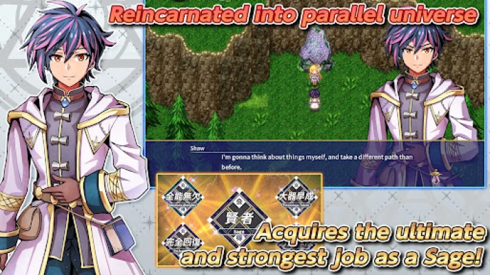 With exceptional passive skills that for example can change the future by returning before Game Over, get rid of enemies in turn-based battles by summoning spirits or managing mana plants, or even use the skills of monsters!