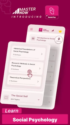• Structured Content: Learn Social Psychology step-by-step, from foundational theories to advanced concepts.