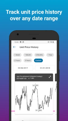 View Unit Price History - shows fund performance for the selected funds over a specific period, alongside the current balance invested in this fund